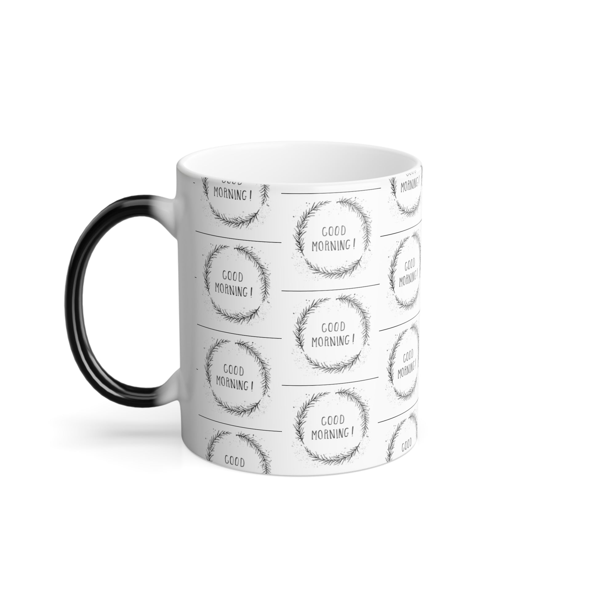 Color-Changing Mug — "Good Morning!" Repeating Stamp Design, 11 oz